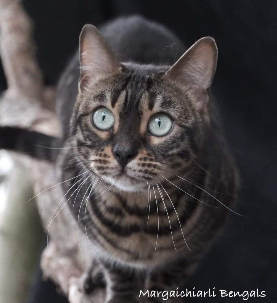 Met grote trots stellen wij onze toekomstige nieuwe Queen aan u voor. Praslin Dakota of Margaichiarli. Dakota is een prachtige Brown Black Rosetted Bengaal. Ze is geboren op 8 december 2023 bij Cattery Praslin Bengals in Den Haag. Ik ken fokker Nikoletta al jaren en ik ben altijd dol geweest op haar kittens. Ik ben zeer vereerd dat ik eindelijk mijn eigen Praslin kitten heb. Bedankt Nikoletta voor dit lieve en mooie meisje. We hopen in 2025 een eerste nestje van haar te mogen verwelkomen. Onze stud Hunter zal de vader worden. We zijn heel erg benieuwd hoe de combinatie uit deze twee beauties zal zijn. We verwachten kittens met grote contrastrijke rozetten.